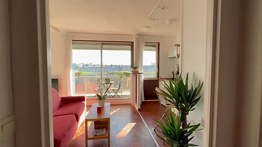 leilighet med balkong har alt du trenger for et godt og behagelig opphold i Paris. Den ligger i 7. etasje, har mye lys, stor balkong og utsikt over byen (– og ja, det er heis). Fra balkongen ser du utover hustakene i 180 grader, mot Montmartre med Sacré-Cœur og toppen av Eiffeltårnet.